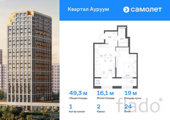 Предлагается 1-комнатная квартира бизнес-класса 49,28 кв.м в корпусе 2 на 24 этаже, в ЖК «Квартал Ауруум»
