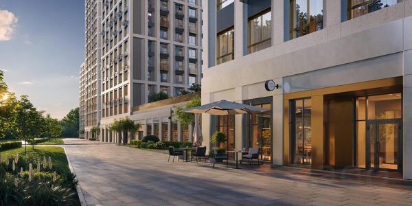 Жилой квартал находится в развитом районе, где все необходимое рядом — свой детский сад, магазины, кафе и школа — через дорогу.