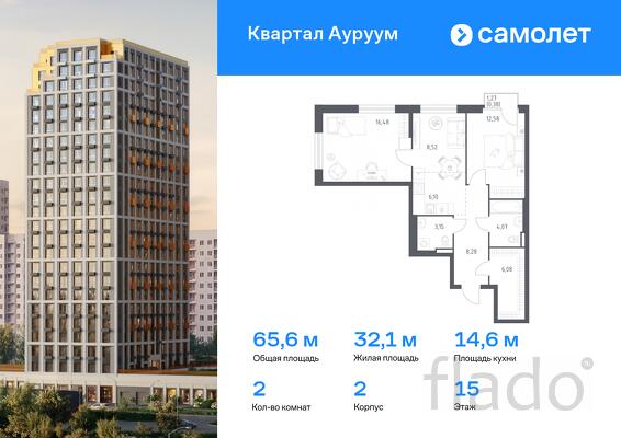 Предлагается 2-комнатная квартира бизнес-класса 65,64 кв.м в корпусе 2 на 15 этаже, в ЖК «Квартал Ауруум»